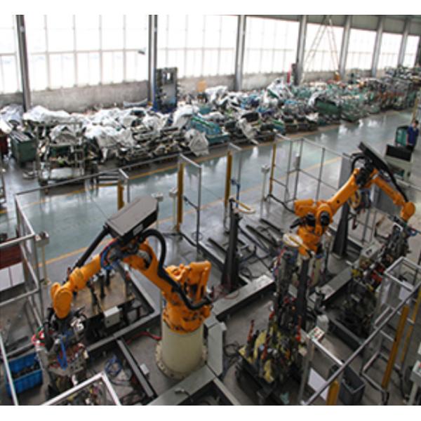 Case highlights: 1. Renovation of existing fixtures with low cost and short cycle; 2. There are many types of flexible switching of fixtures, automatic switching of various welding tongs, 4 robots and one master control station, 27 sets of fixtures, and 16 stations.